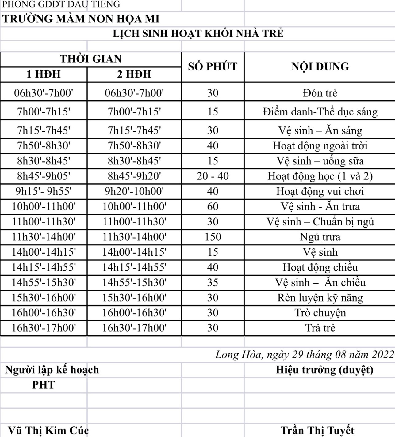 Lịch sinh hoạt Khối Nhà Trẻ. Năm 2022-2023
