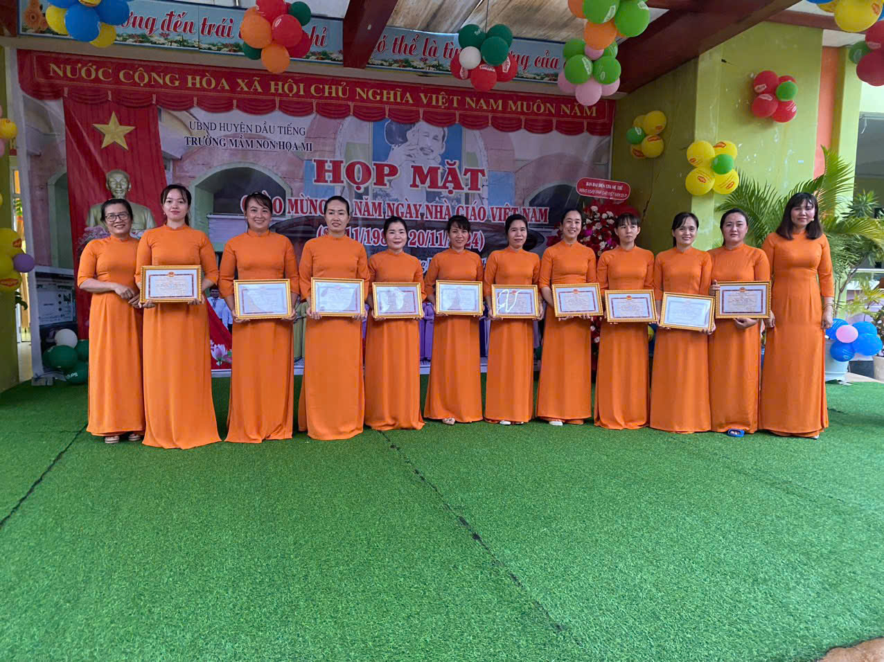 Các cô nhận khen thưởng.